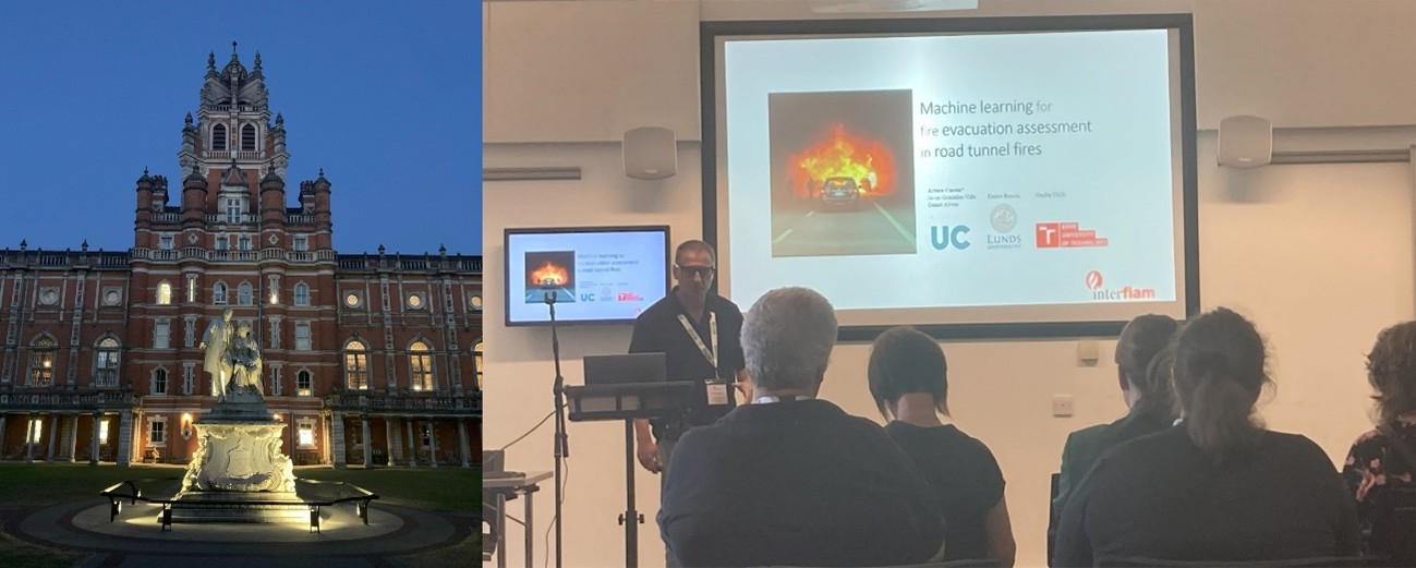 Entre los días 30 de junio y 2 de julio de 2025 tuvo lugar en el Royal Holloway, University of London, una nueva edición del congreso Interflam, uno de los encuentros internacionales más relevantes en el ámbito de la ingeniería y la ciencia del fuego. En esta ocasión, el grupo GIDAI de la Universidad de Cantabria participó activamente presentando dos trabajos de investigación.