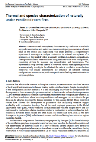 Se ha publicado en open access el trabajo titulado “Thermal and species characterization of naturally under-ventilated room fires” en la revista Journal of Physics.
